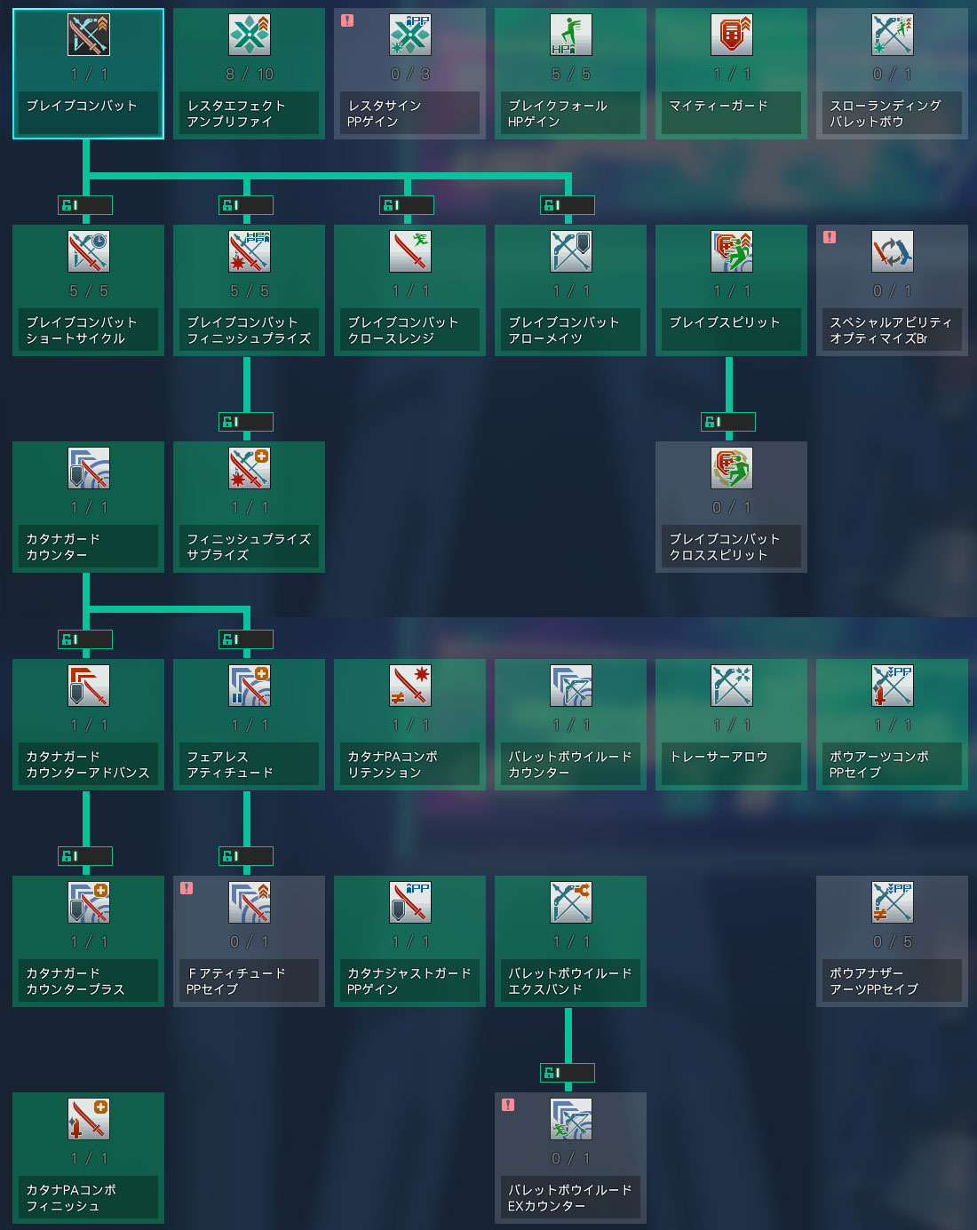 それ以外はカタナとバレットボウに関連するスキルがほとんど。Br武器を使わないのであればサブBrにするメリットは薄め。