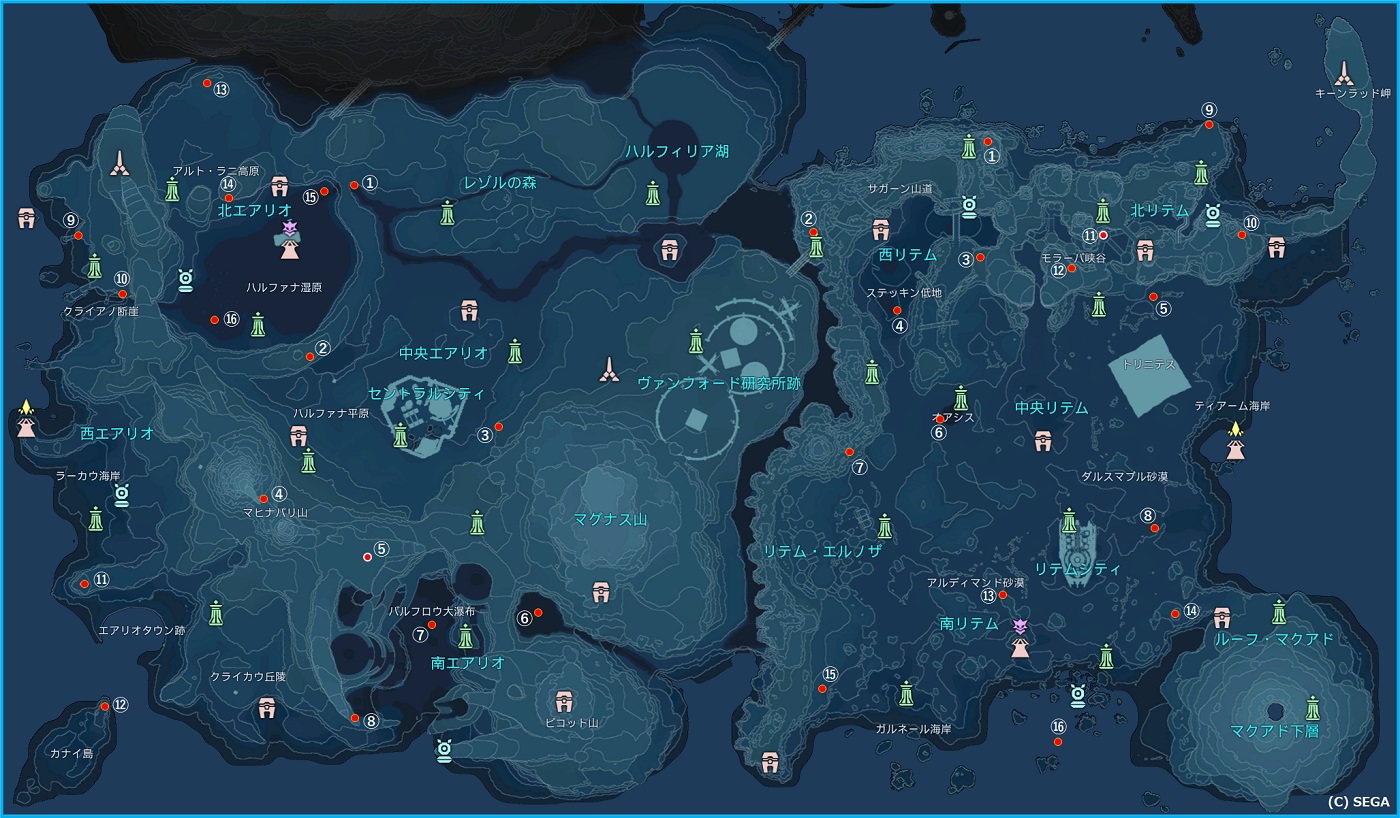 ハルフィリア湖を除く全てのセクションにシーズンシンボル付きエネミー(シーズンエネミー)が出現する。