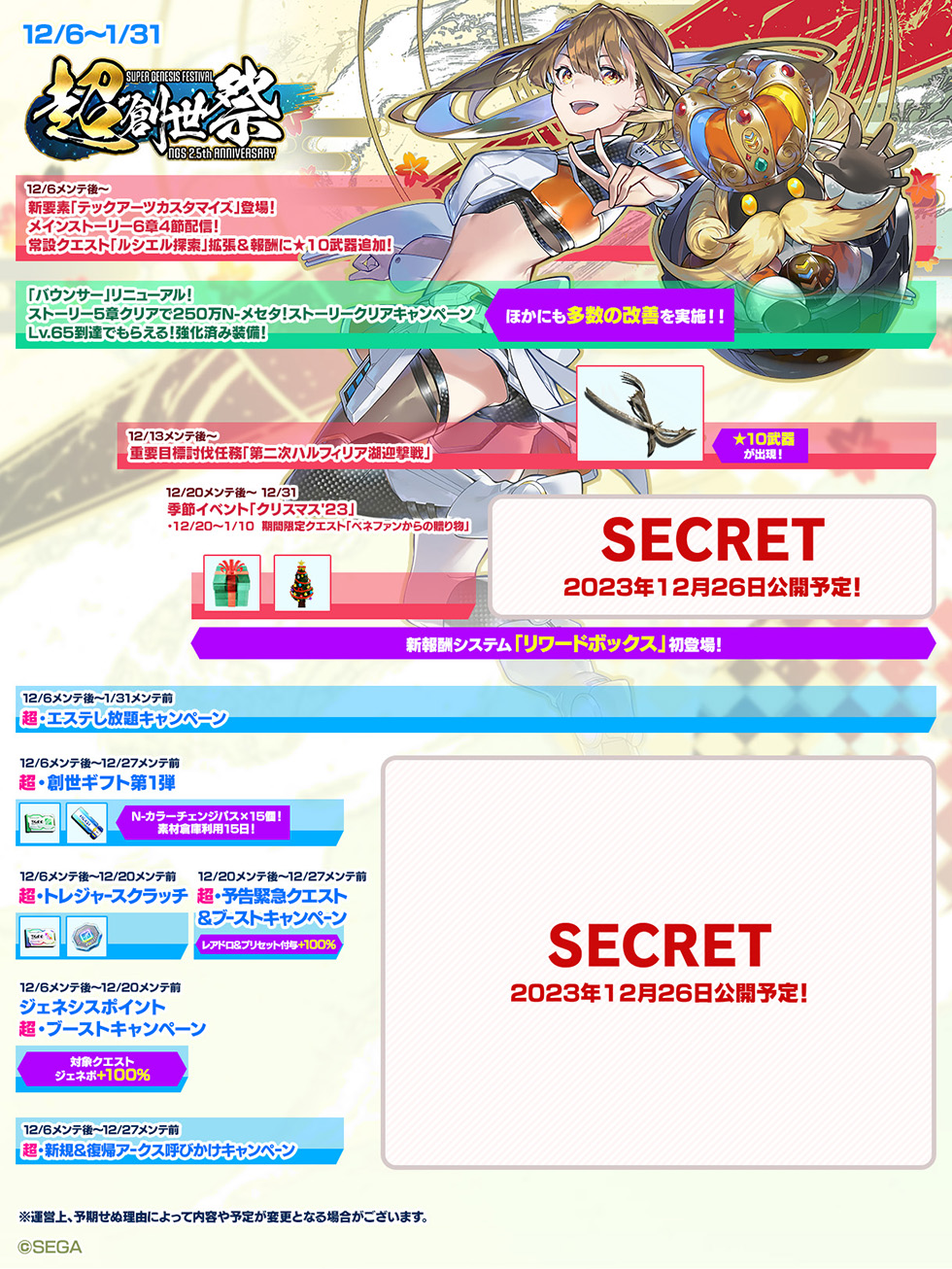 「超・創世祭」では、2023年12月6日から2024年1月31日まで、様々なキャンペーンが実施される。