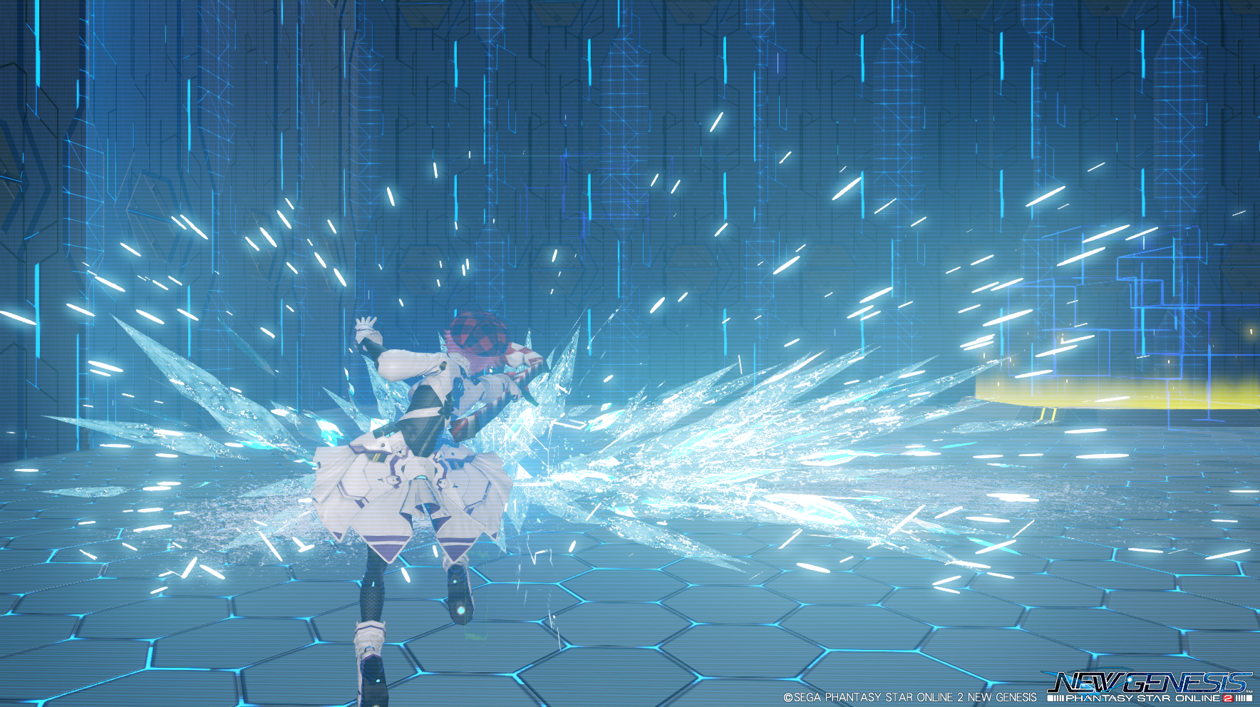 氷属性のテクニック。空間上のフォトンを活性化させ、自身の前方に氷の礫を発生させる。チャージすることで、威力が上昇する。
