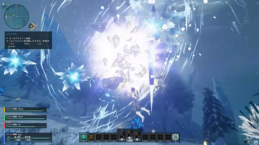 このトライアルの発生時は周囲に水晶氷が追加配置される。コールドフォトンの爆発だけでなく、エネミーに直接投擲することでもかなりのダメージを与えられるので、コールドフォトンが再配置されるまでの間も活用したい。