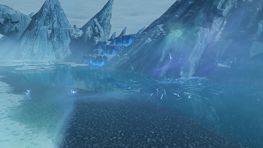 リューカーデバイス「レイヨルド峡江」周辺の高台(キャンプサイトが設けられている場所)のみセーフゾーンとなっており、低温ダメージを受けずに済む。