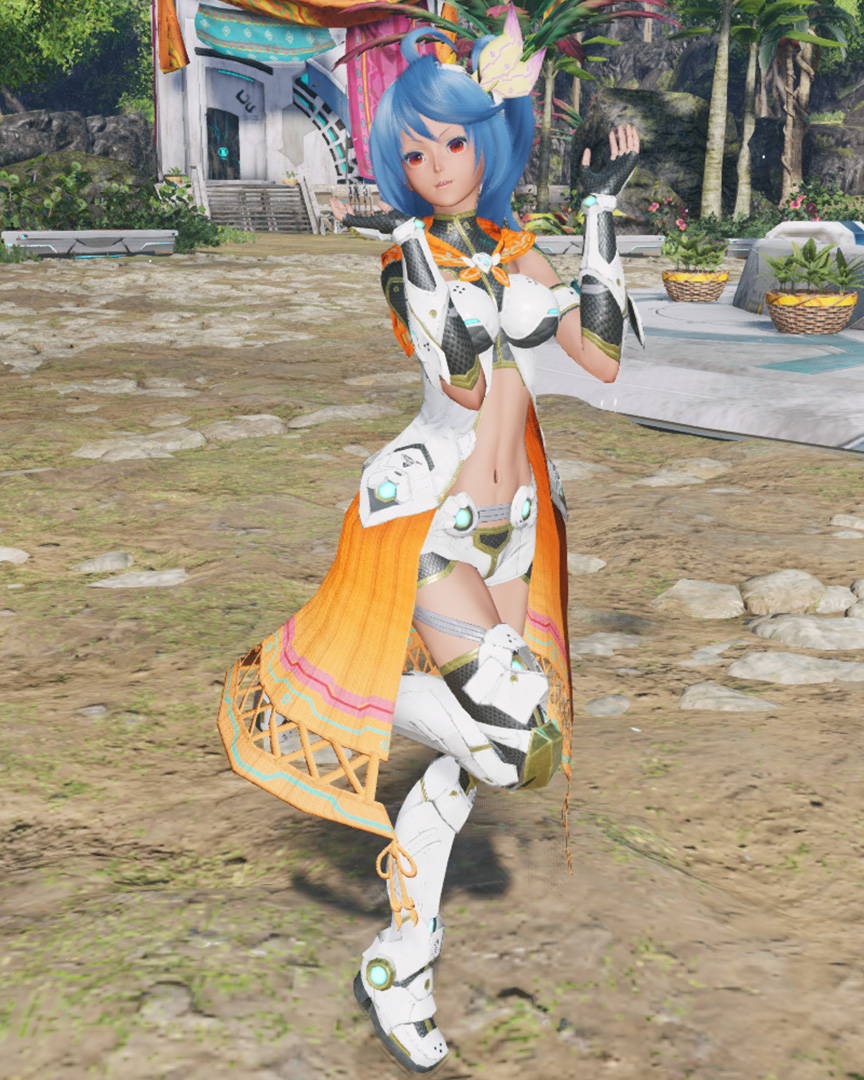 V2は手足の装甲および靴、首から二の腕および胸元にかけての布地が無くなって、ホットパンツ+キャミソールじみた趣になるのね。Ouおよび靴アクセや靴下系ボディペとの合わせ力を問われるか --