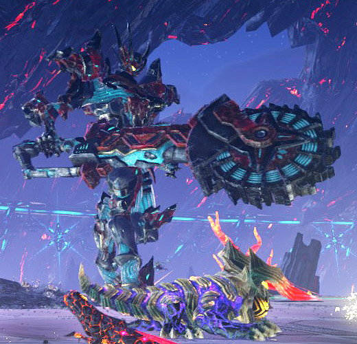火山地域対応型のダイダル・ソード。先端に凶悪な丸鋸の付いた武器を振るう。 レアドロップ