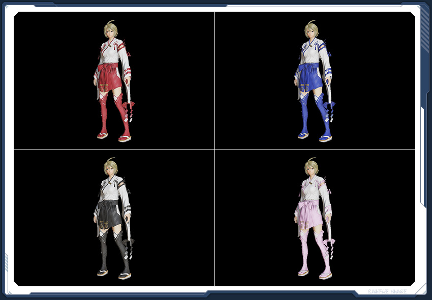 N-カナギマイヒメ[Se] カラー1(下駄を含む白色のところ、背中の紋様はやや明るめ):RGB(231、231、231)、カラー2(赤色のところ):RGB(140、0、21)、装飾1非表示:靴下 --