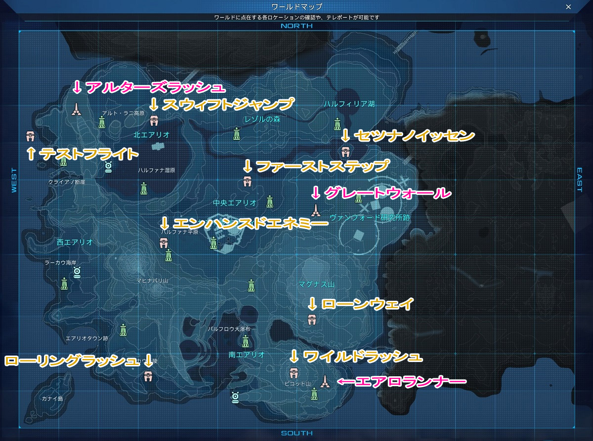 | 説明 | ここは、アークス各人の基本能力を試すトレイニアである。 指示に従い、新たなアクションを習得しつつ、目標地点に到達せよ。 |