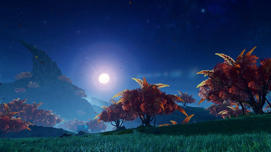 イベント期間中はお月見をモチーフとしてセントラルシティが飾られ、フィールドの木々も美しく紅葉する。