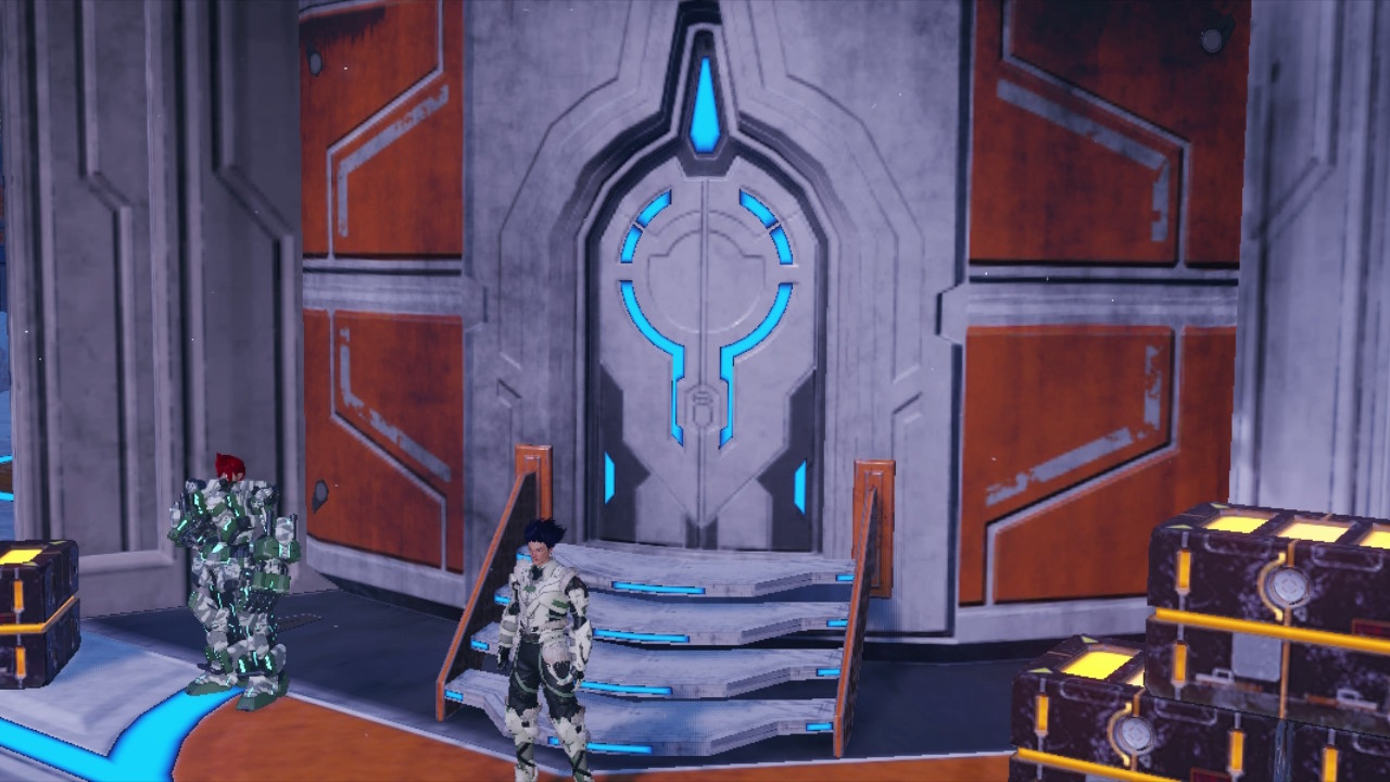 建物の入口付近にはクヴァリス先遣隊長・クリストバルとアークス後方支援員・イングスタッドがいる。