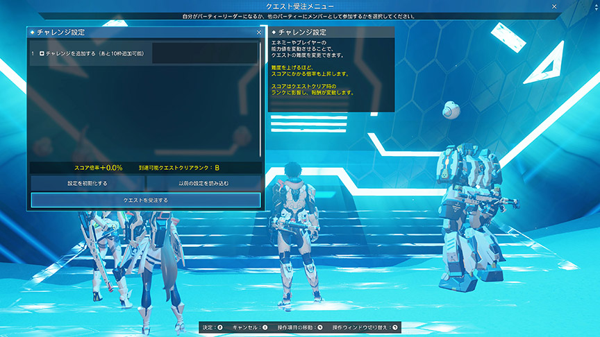 スコアはクエストクリア時のランクに影響し、報酬が変動する。