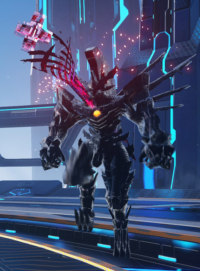 出現時は拳で殴ってくるが、ある程度HPを減らすと抜刀しソードモードに移行する。