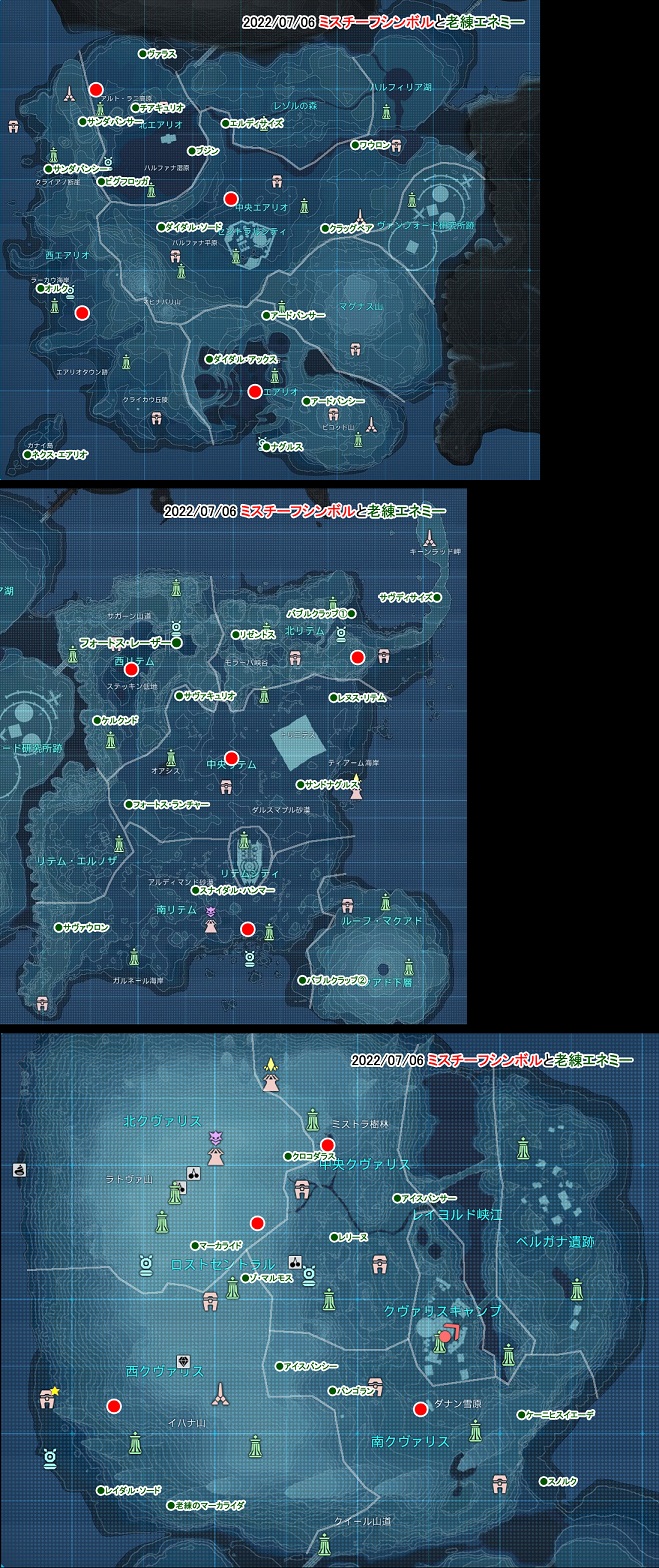 ハルフィリア湖を除く全てのセクションにシーズンシンボル付きエネミー(シーズンエネミー)が出現する。