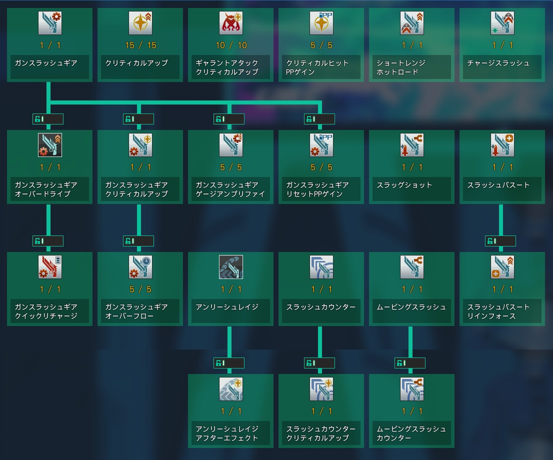 ガンスラッシュギアのギアゲージの段階に応じて、クリティカル発生率が上昇する。