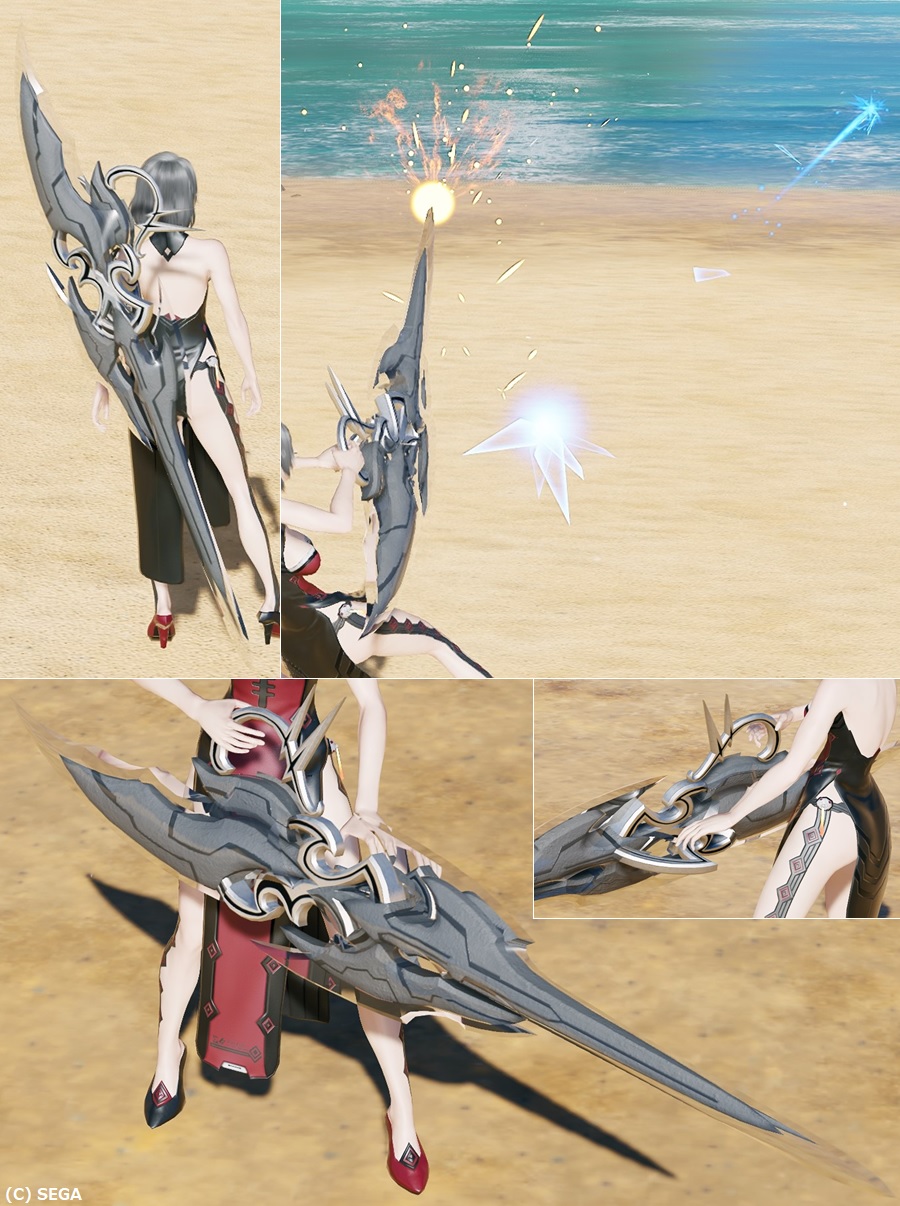 曲線状の金属パーツとそれを覆う透明なガラスが特徴的な見た目の武器シリーズ。