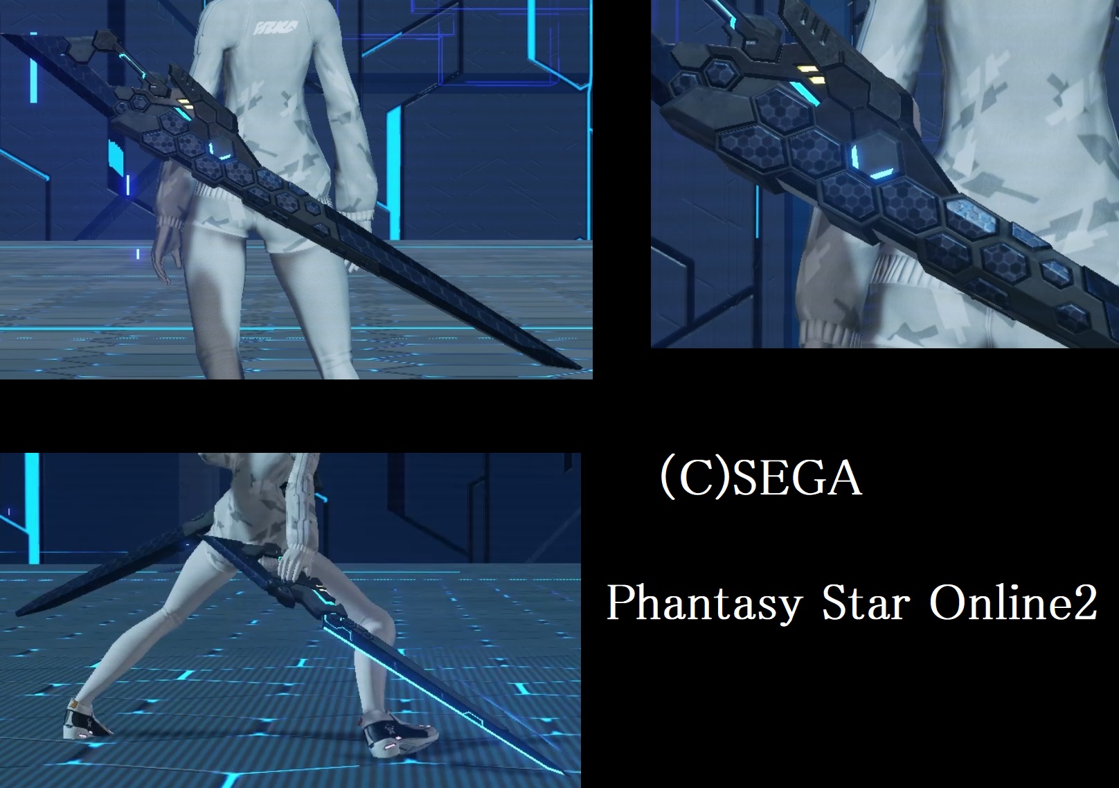 トレイニアなどの建造物の素材で作られた武器。ハニカム形の規則的なパーツが特徴で、黒光りする刀身や固い質感が無機質で、不思議な雰囲気を感じさせるデザインになっている。