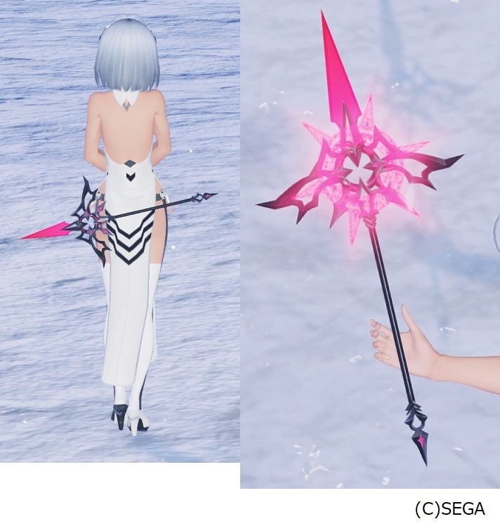 「ファンタシースター」シリーズの過去作品に登場した武器を模したデザインとなっている。
