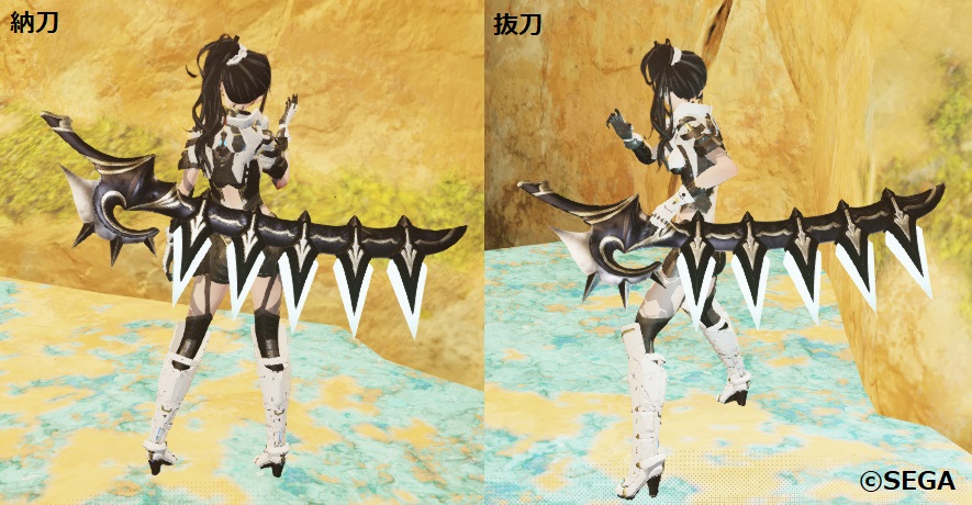 「ファンタシースター」シリーズの過去作品に登場した武器を模したデザインとなっている。