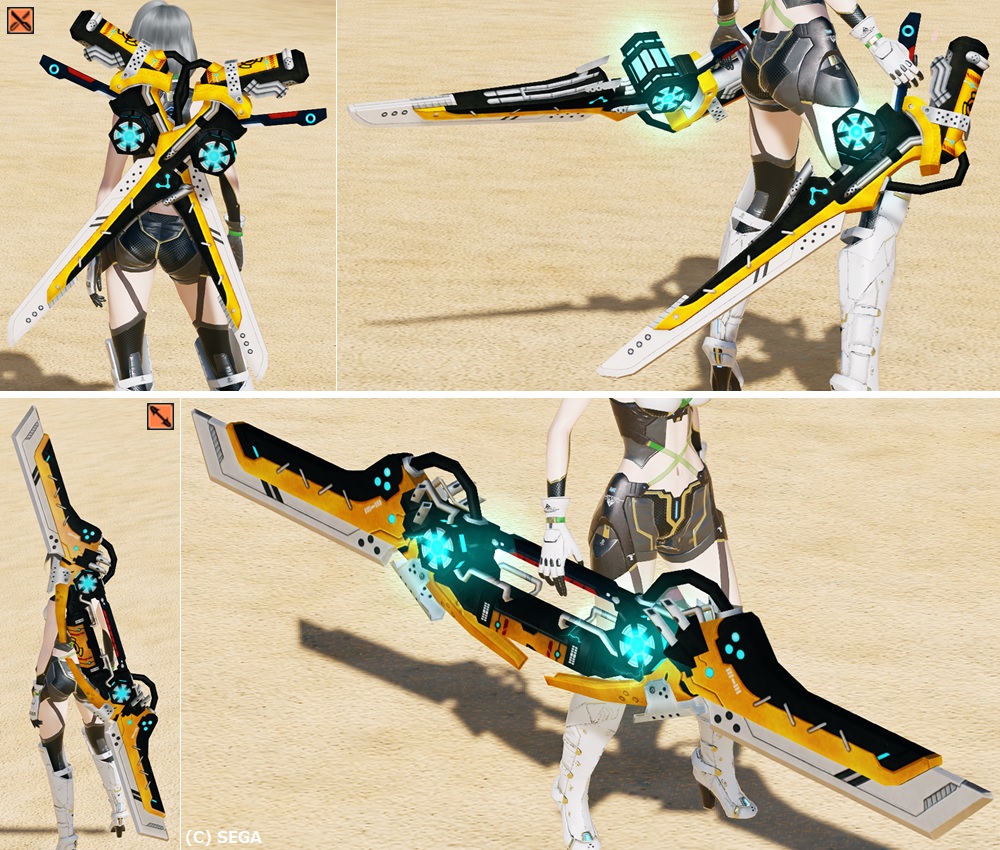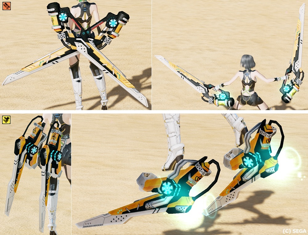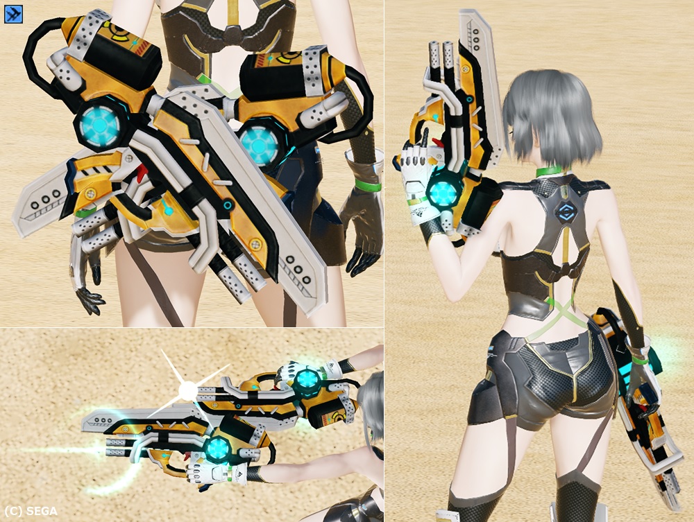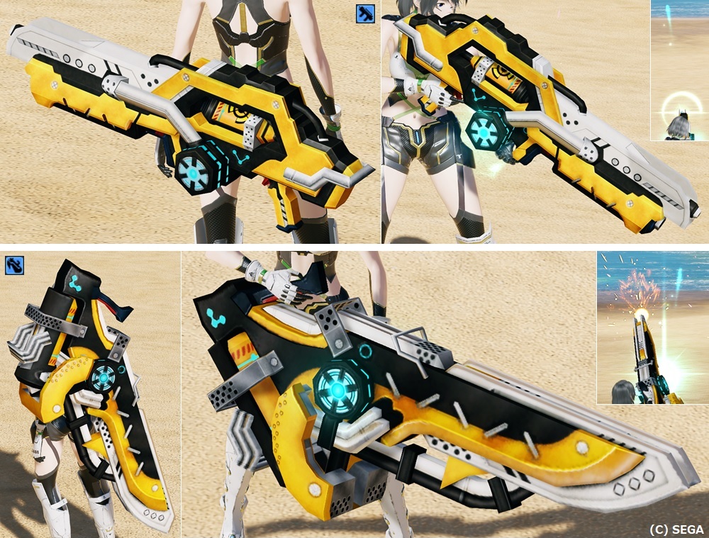 旧PSO2の「ステルク」シリーズをモチーフとした武器迷彩。 旧PSO2の元武器にはなかった打撃・法撃武器やアサルトライフルが追加されている。