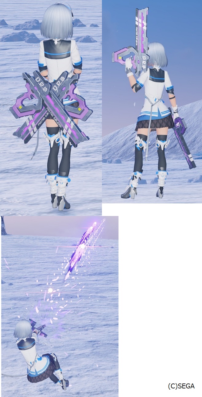 「ファンタシースター」シリーズの過去作品に登場した武器を模したデザインとなっている。